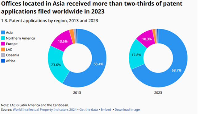 The gap is similar in terms of patent applications (69% in Asia, 18% in North America, 10% in Europe)[3]. Finally, public research is less well funded and less focused on technological innovation. Another illustration of this innovation gap is the shortage of start-ups, and a greater difficulty in growing them on our continent: there are fewer unicorns (private start-ups with a valuation of at least $1 billion) in Europe: 790 in the United States, 280 in China, 310 in the rest of Asia, 110 in the European Union and 65 in the United Kingdom[4]. Venture capital investment accounts for less than 0.2% in the European Union, compared with nearly 0.7% in the United States and 0.55% in the United Kingdom[5].
