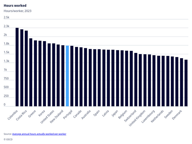 The hours worked is significantly lower in Europe: for 1800 hours worked per year in the United States, Germany works 1350 hours and France 1500[8]. The difference is even greater when we look at the total time worked over a lifetime: the average effective retirement age is 68 in Japan, 65 in the United States, 63 in Germany and 61 in France; finally, the unemployment rate is 4.2% in the United States, 4.5% in the United Kingdom, 3.5% in Germany, 7.6% in France, 6.7% in Italy and 2.5% in Japan[9].