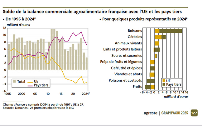 The trend in France's agri-food balance of trade has shown a worrying deterioration within the European Union since the early 2010s.