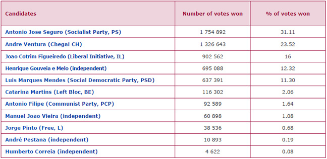 10.9 million Portuguese citizens, including 1.6 million living abroad, have made their choice: António José Seguro (Socialist Party, PS), former secretary-general of the Socialist Party (2011–2014), and André Ventura (Chega! Enough! CH), founder and leader of the radical right-wing party, are the two candidates who came out ahead in the first round of the presidential election on 18 January. Once again, opinion polls failed to predict the results of the election.